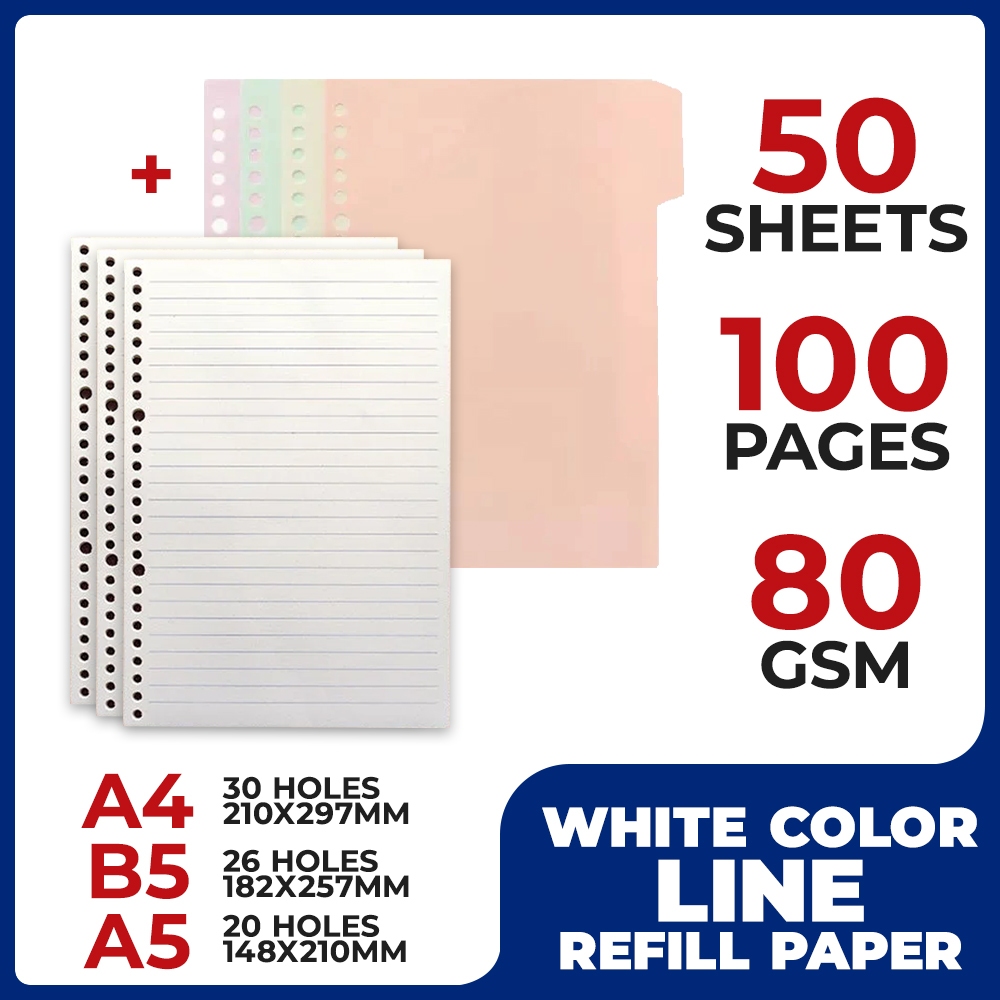 5PACKS Bundle Refill Paper 300sheets A5/B5/A4 FREE PAGE SEPARATOR 20/26/30 Holes Loose-Leaf Notebook