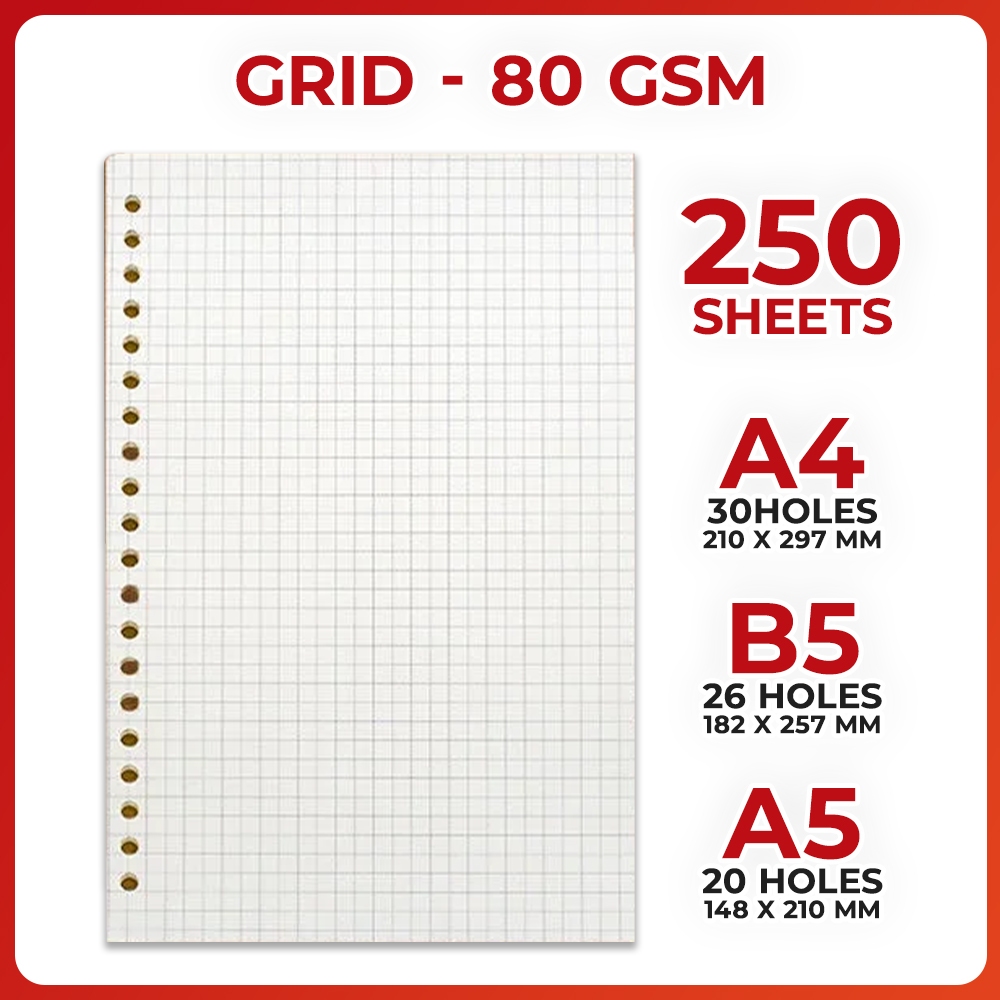 5PACKS Refill Paper BUNDLE 250 Sheets A5/B5/A4 20/26/30 Holes Loose-Leaf Notebook
