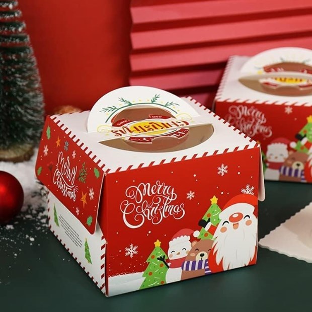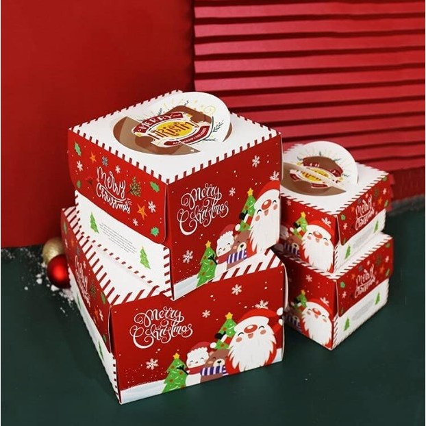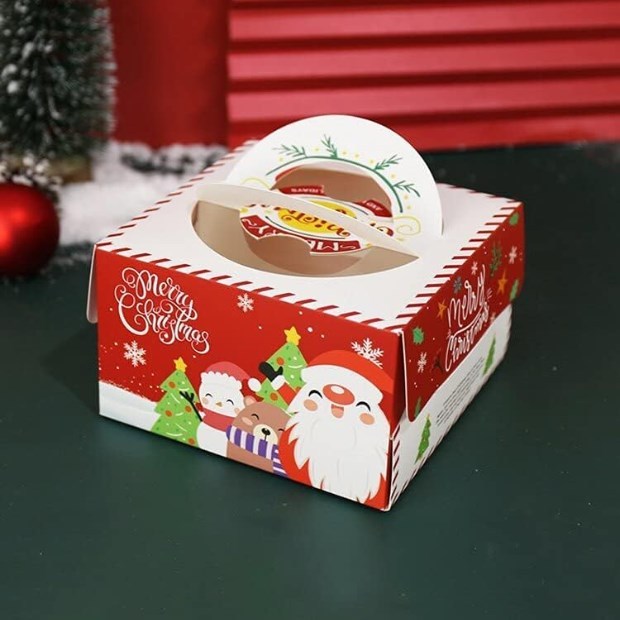 5PCS Christmas Cake Box with Handle & Window | Sturdy Gift Packaging for XMAS Cupcakes, Cookies, ect