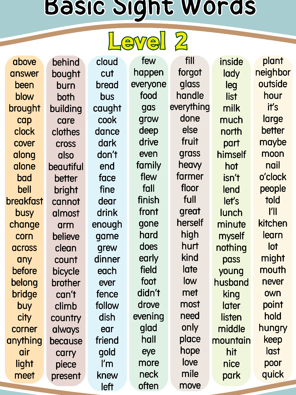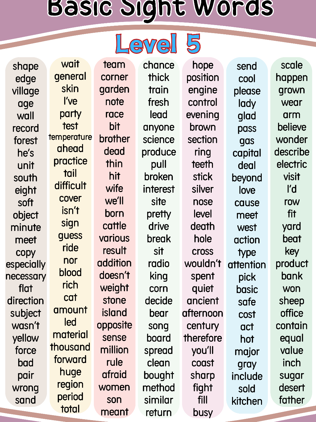 5PCS English Beginning Reading A4 Size Laminated BASIC SIGHT WORDS Level 1-5 for Kids 3-12yrs old