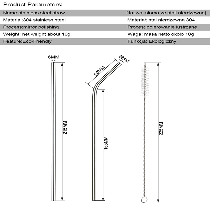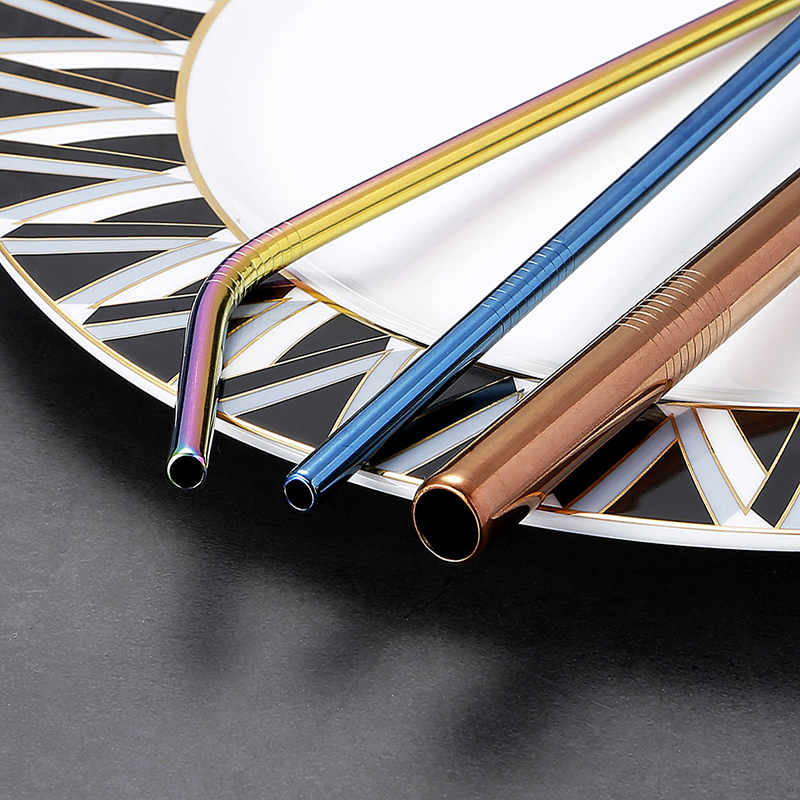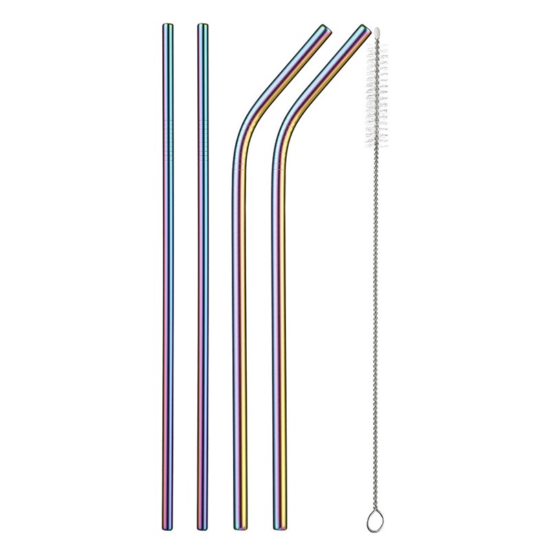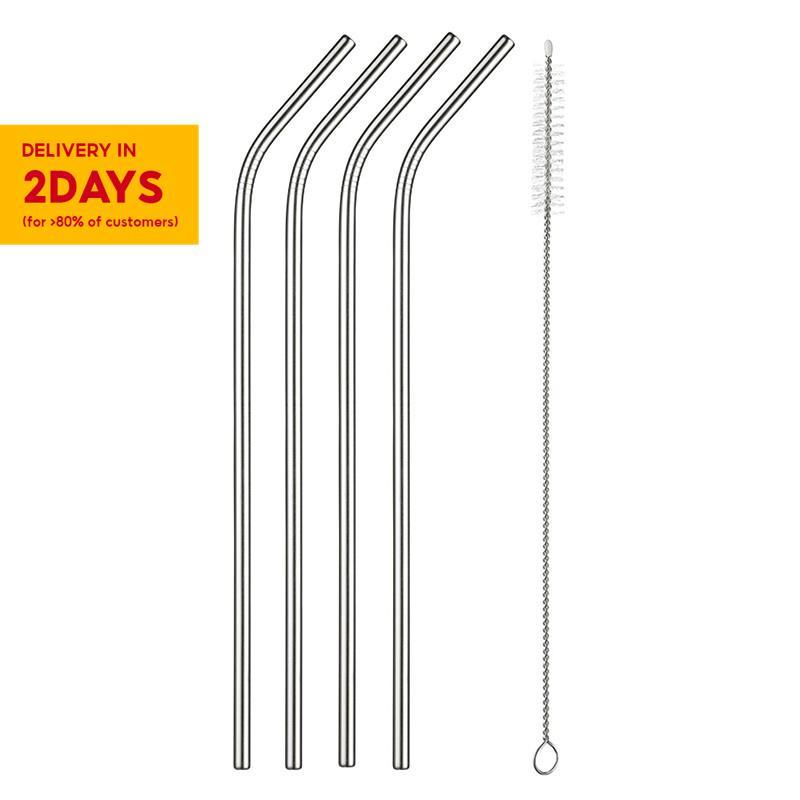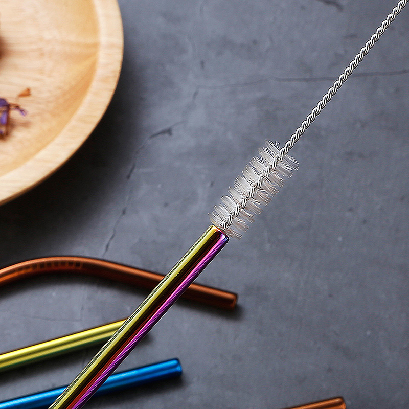 Reusable Stainless Steel Drinking Straws with Cleaning Brush for Party and Bar