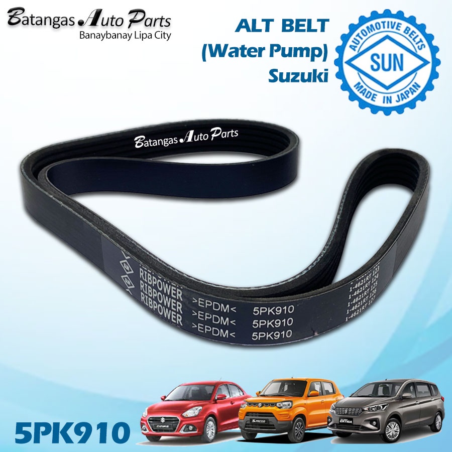 5PK910 ALTERNATOR DRIVE BELT SUZUKI ERTIGA 1.5 / S-PRESSO / SWIFT DZIRE 2019-2022 SUN MADE IN JAPAN