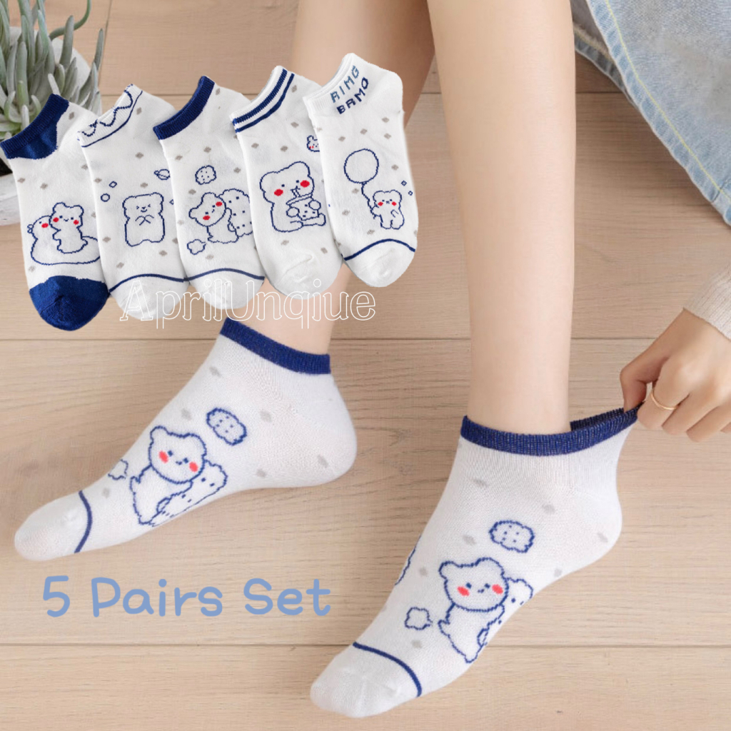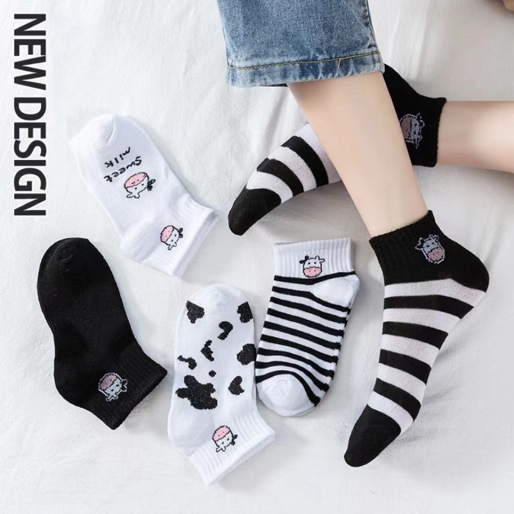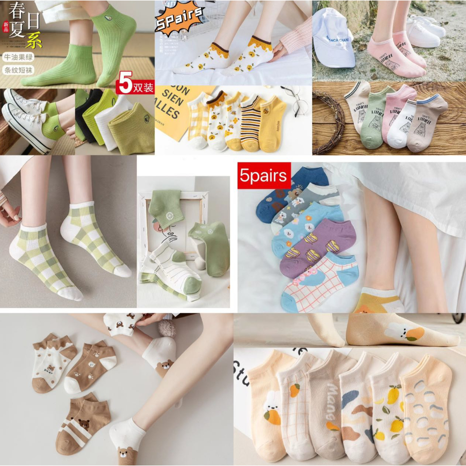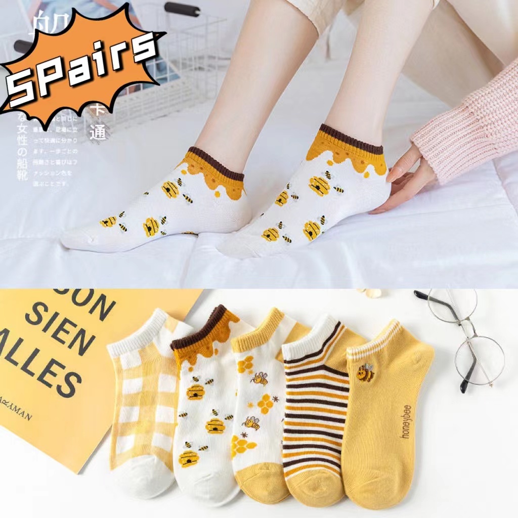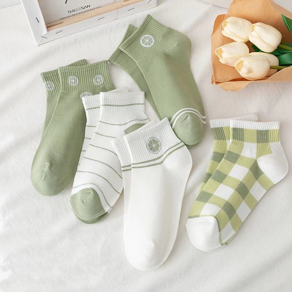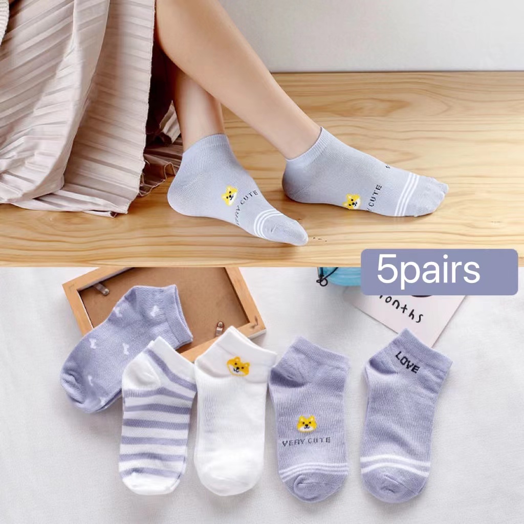 5 Pairs Women’s Korean Fashion Cotton Short Socks – Breathable, Summer Casual