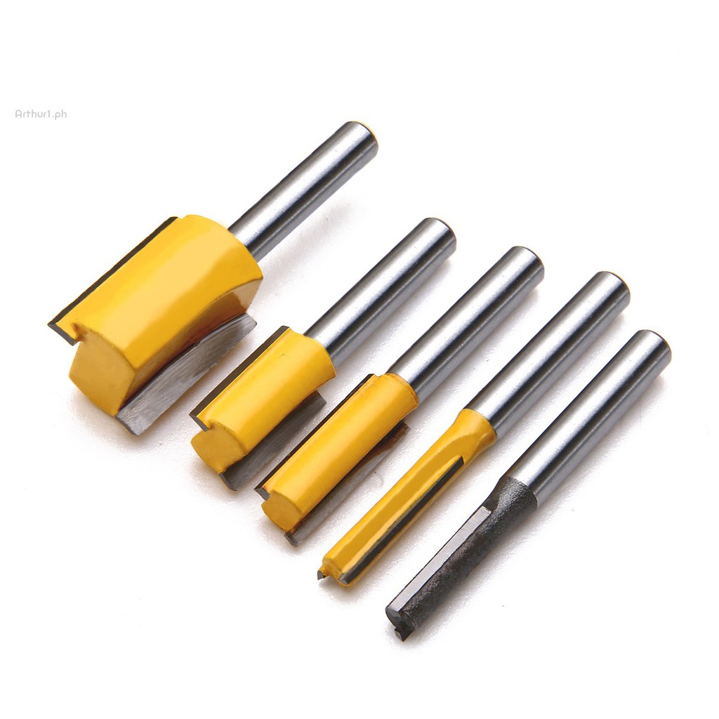 5Pcs 1/4'' Shank Straight & Dado Router Bit Set For Woodworking Trimming Cutter