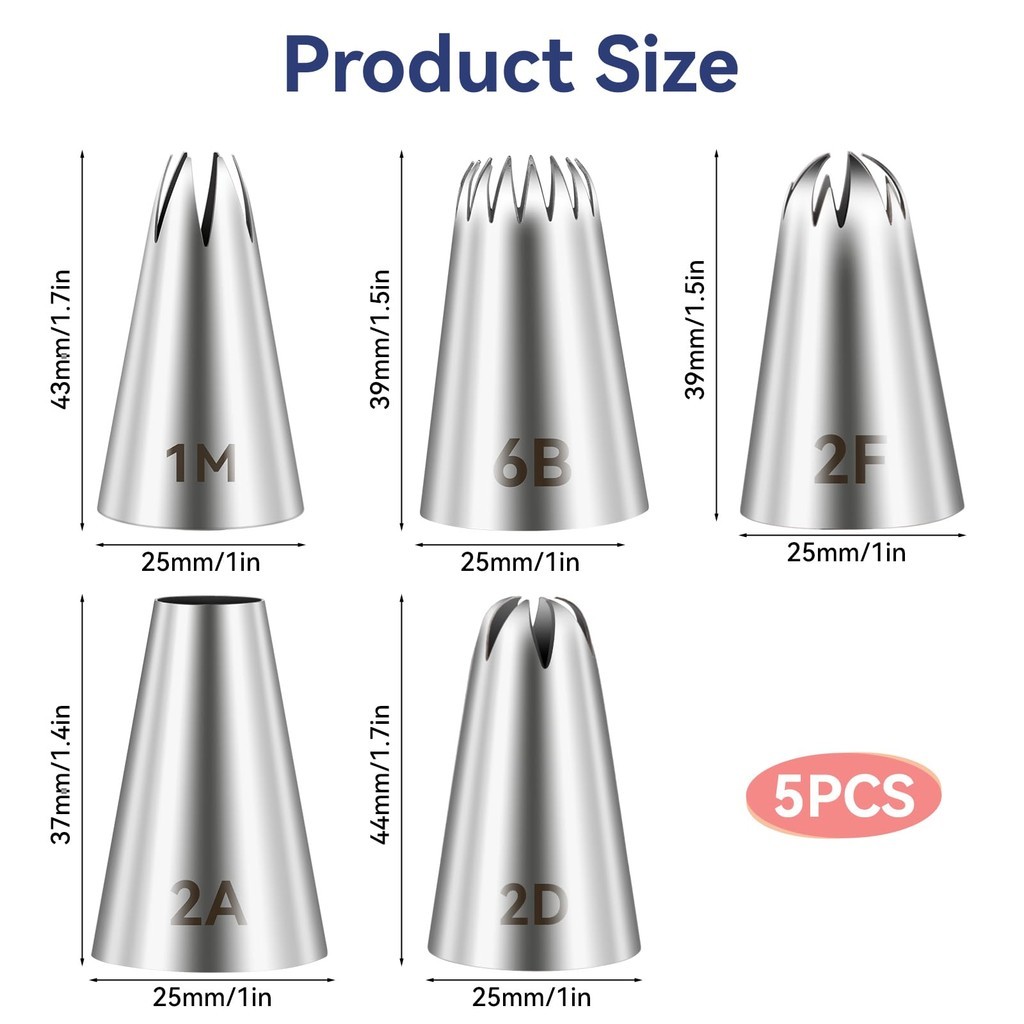 5Pcs Large Metal Cake Cream Decoration Tips Set Pastry Tools Stainless Steel Piping Icing Nozzle Cupcake Decorators