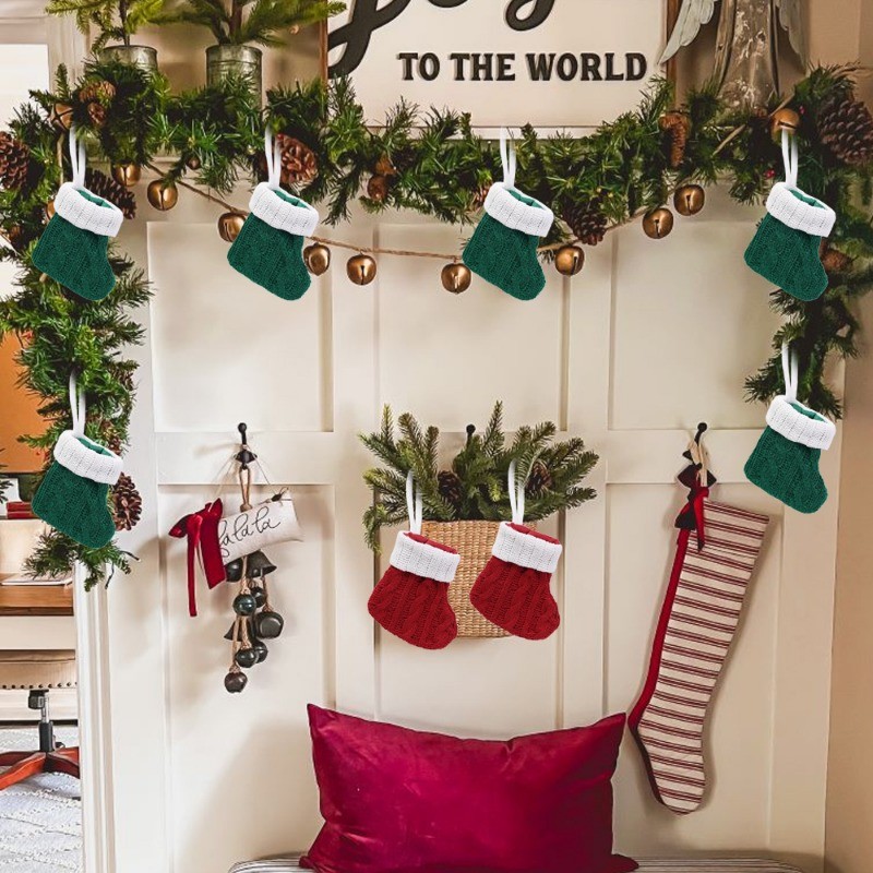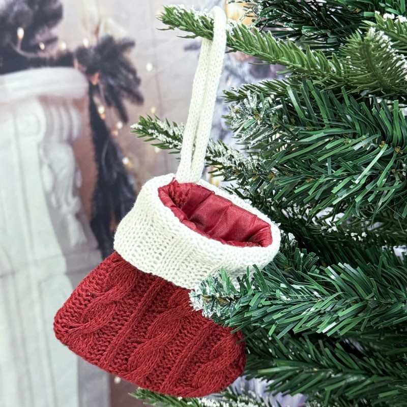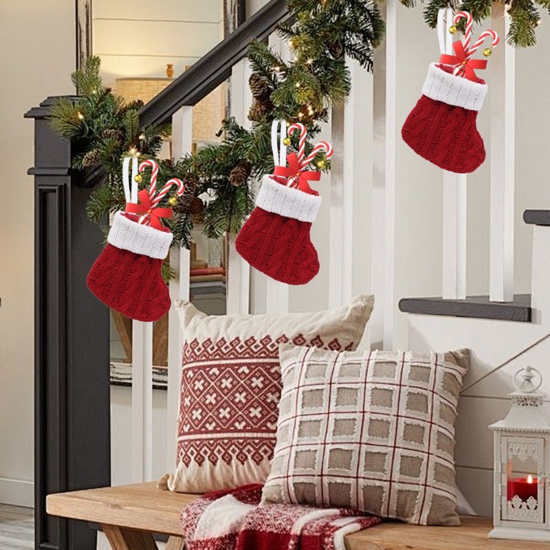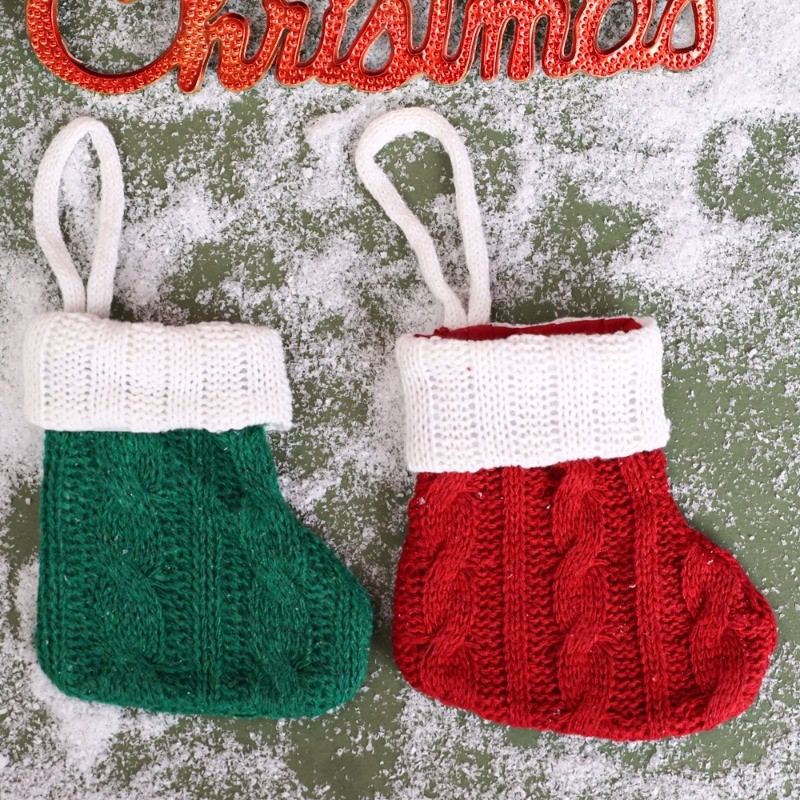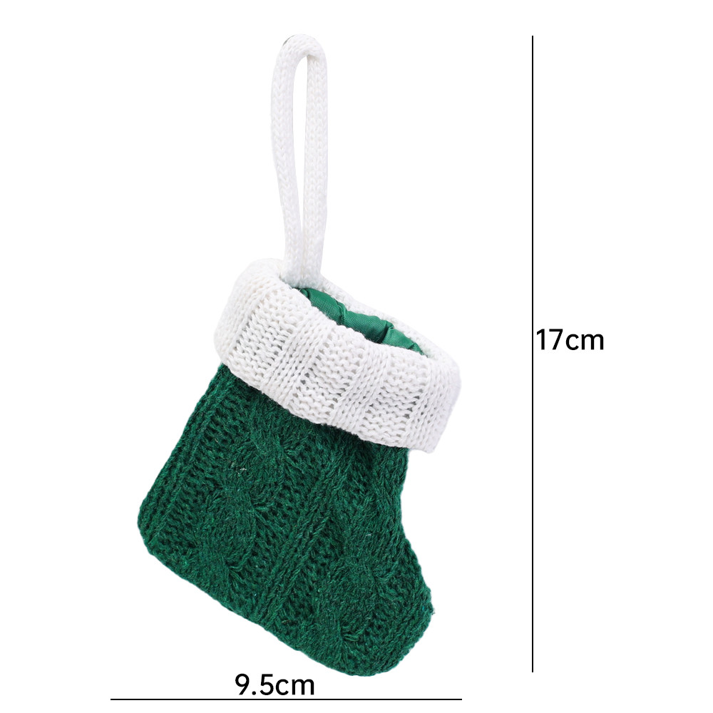 5Pcs Mini Christmas Socks - Knitted Socks Xmas Tree Hanging Ornament - Home Party Table Decor Cutlery Holder Bag