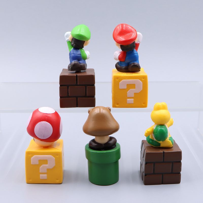 5Pcs/Set Game Super Mario Bros. Figure Luigi Mario Red Mushroom Goomba Koopa Troopa Q Version PVC Action Figures Model Doll Toys