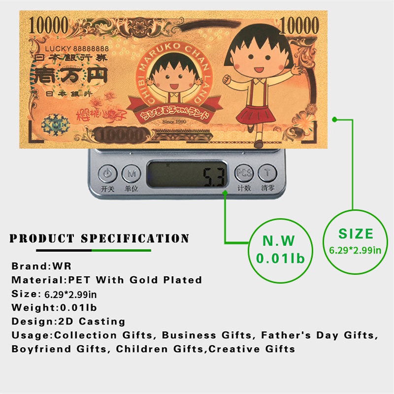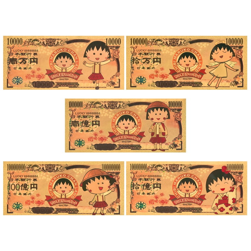 5Pcs/lot Japan Cartoon Yen Gold Foil Banknote Anime Fake Money Gold Commemorative Coins Set Souvenir