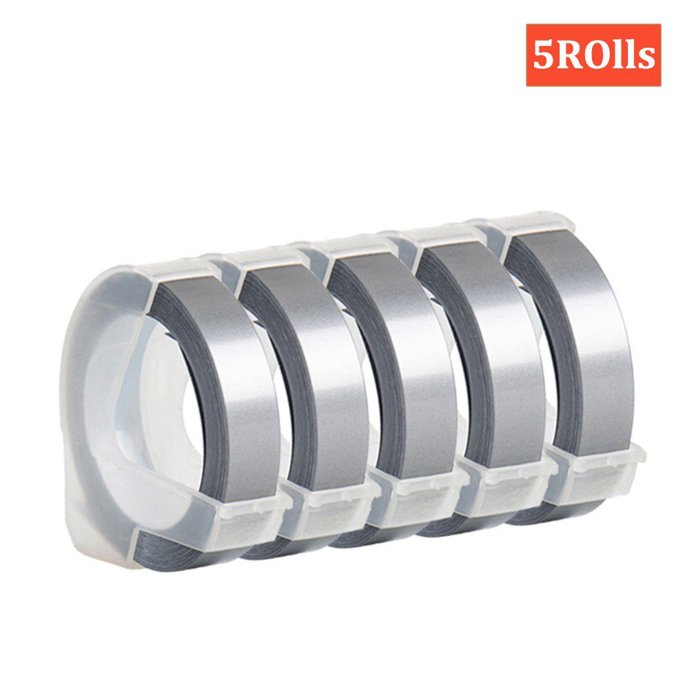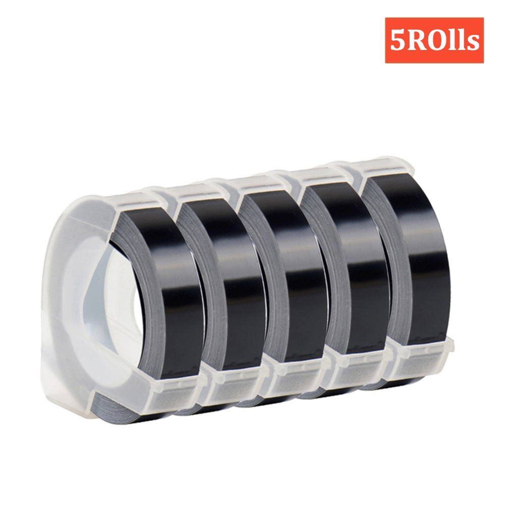 5Rolls Embossing Label Tape 9Mm*3M 3D Plastic Embossing Tapes Compatible for Dymo Label Maker Motex Printer