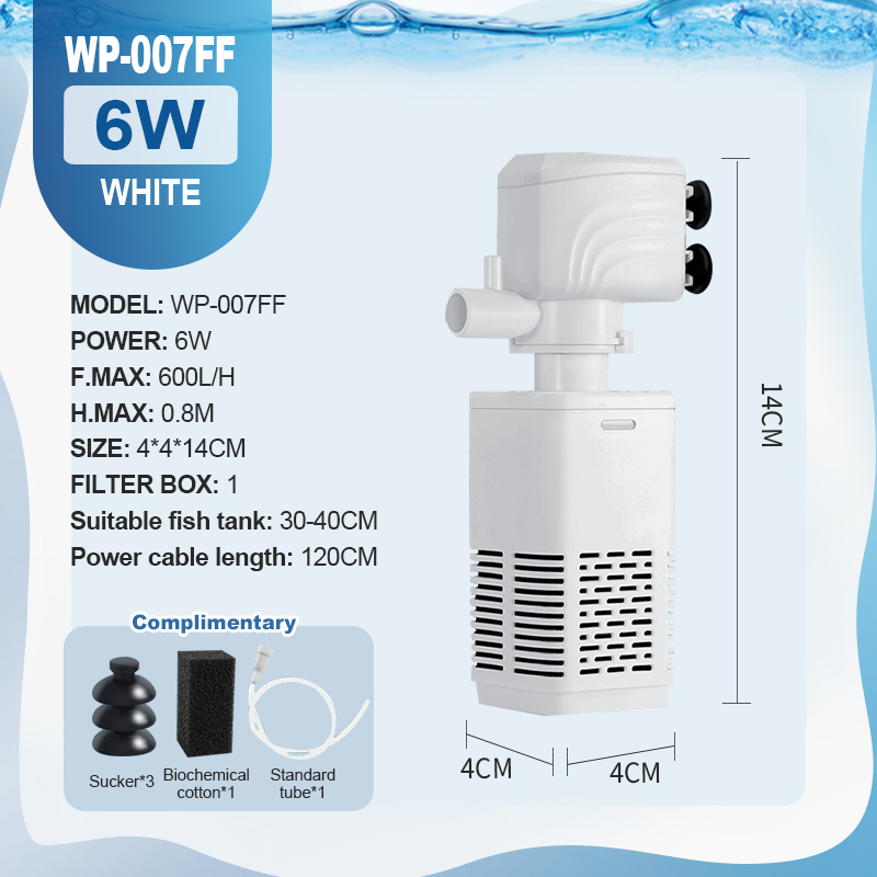 5W 3-in-1 Fish Tank Filter Portable Silent Aquarium Internal Filter Oxygen Submersible Fish Tank