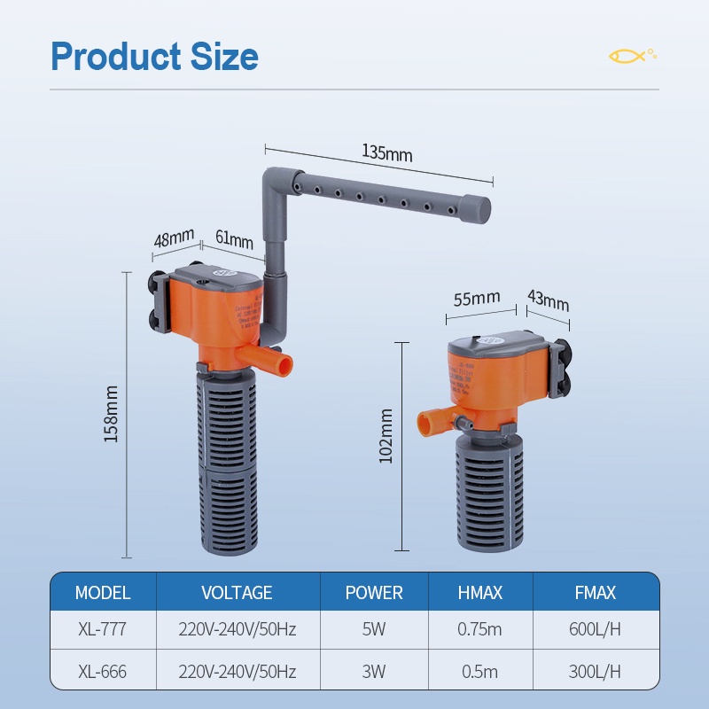 5W 3-in-1 Fish Tank Filter Portable Silent Aquarium Internal Filter Oxygen Submersible Fish Tank