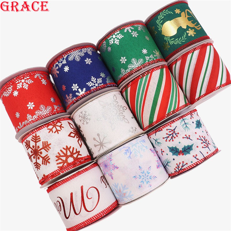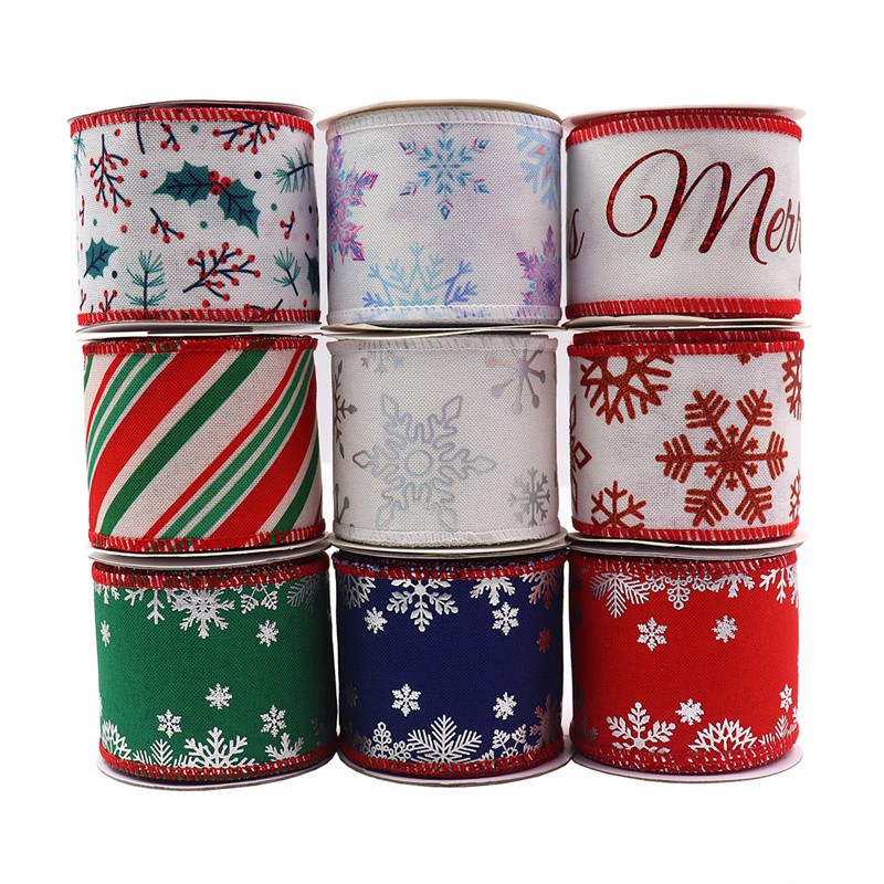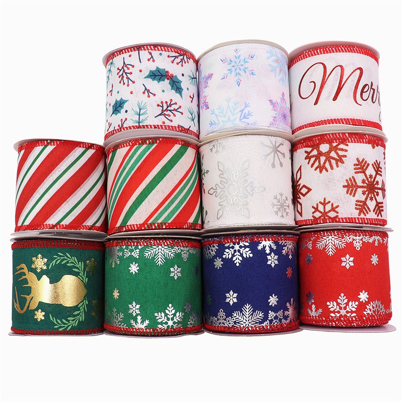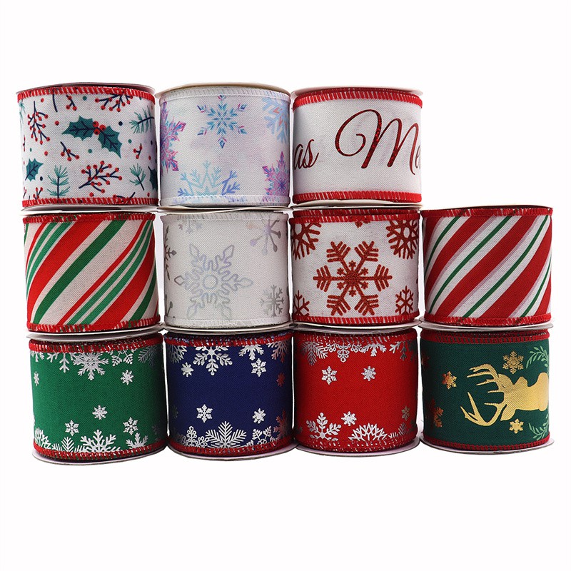5Yards/Roll Wire Christmas Ribbon for christmas tree Imitation burlap grossgrain Ribbon Linen Wired Ribbon Christmas Decoration Red Plaid Buffalo Bowknot Gold Ribbon for packaging Gift Box Wrapping Xmas Tree Decor