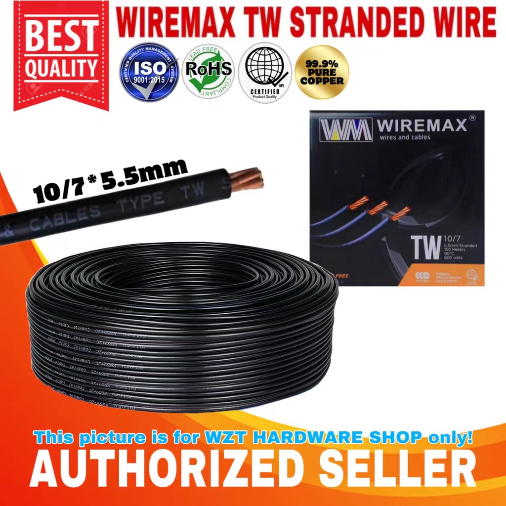 5M-10M TW STRANDED WIRE 10/7 5.5mm & 8/7 8.0mm ORIGINAL WIREMAX 99.99% PURE COPPER