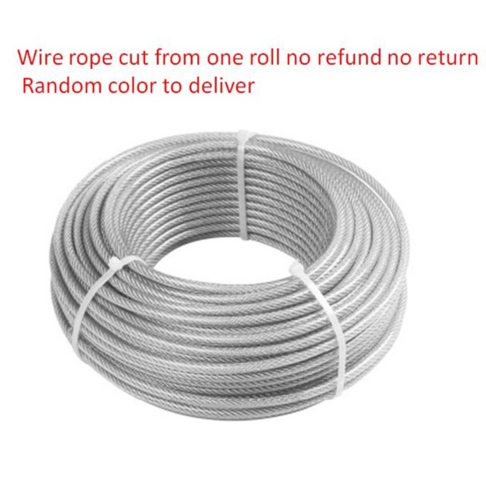 5mm 6mm PVC Steel Wire Rope 50m 100m Wire Rope Galvanized Steel Wire Rope clothesline (RANDOM COLOR)