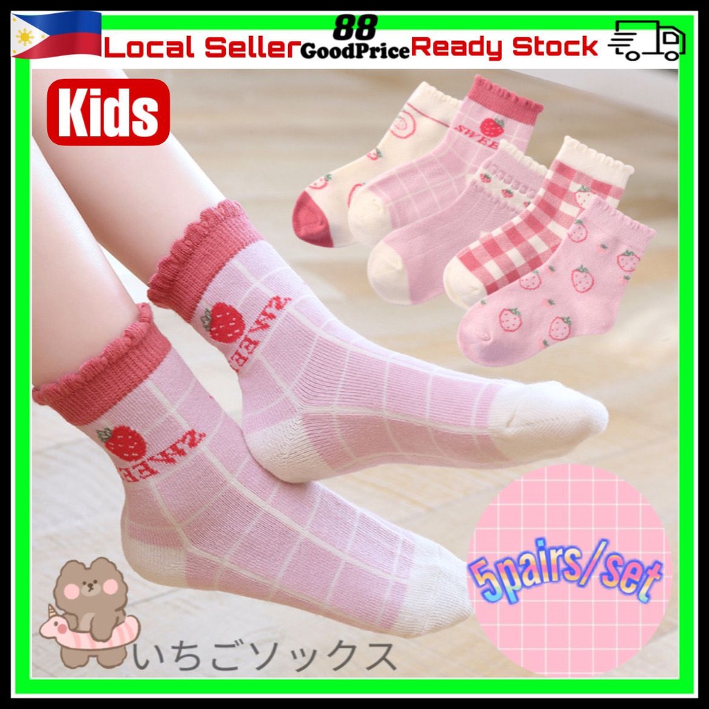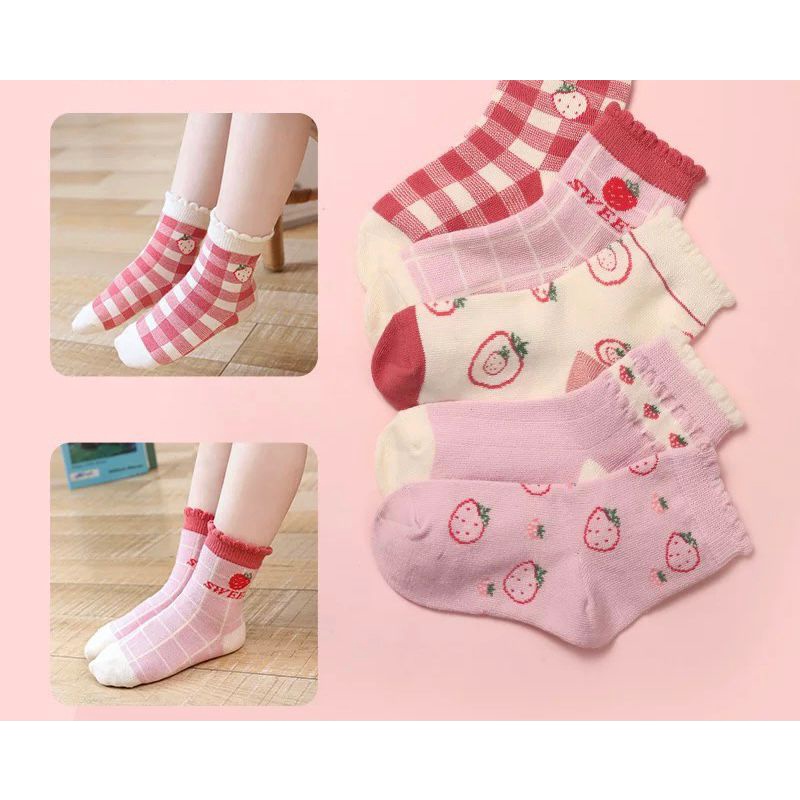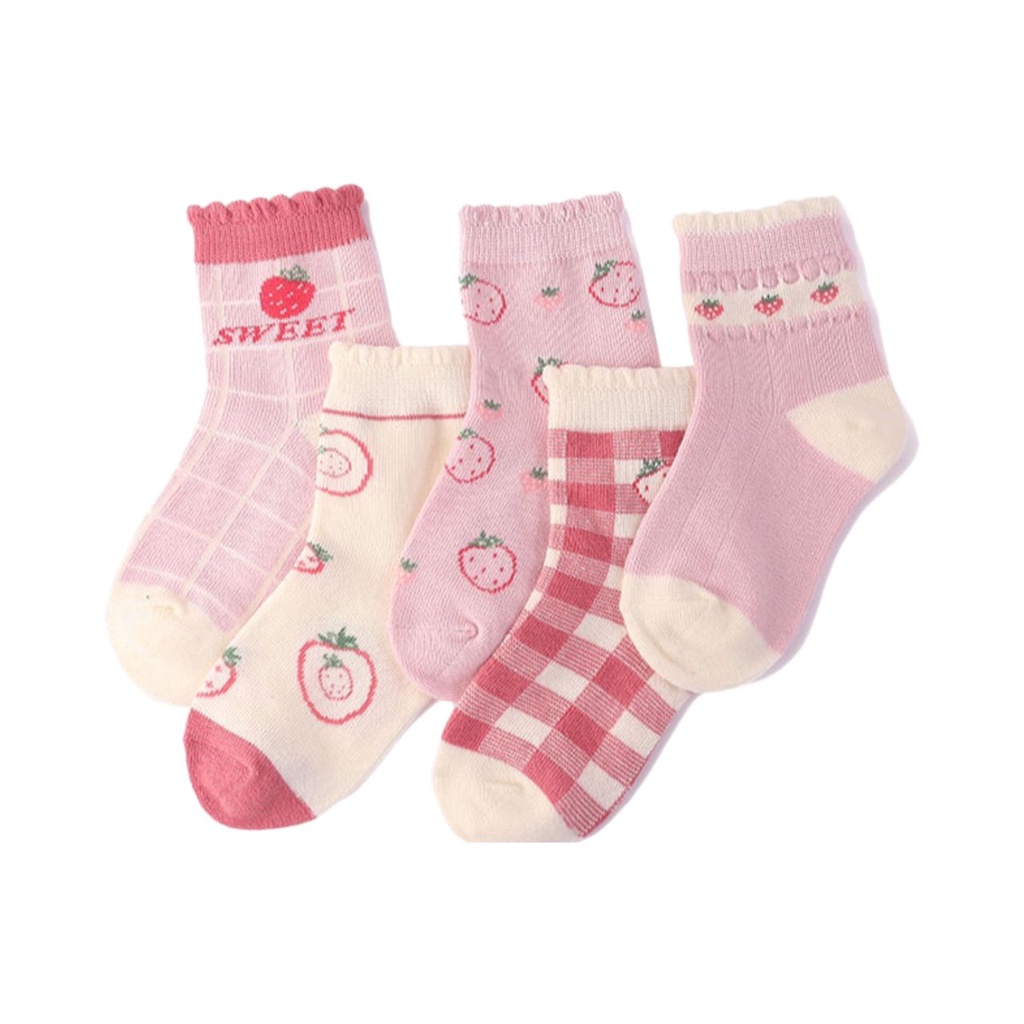 5pair/set Kids Socks Baby Socks Pink Strawberry Girl Socks Stockings Cotton Socks