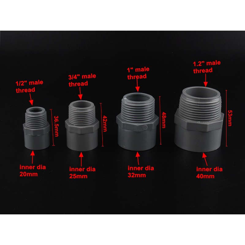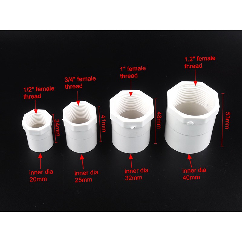 5pcs 1/2",3/4",1",1.2" PVC Thread Connectors 20/25/32/40mm Water Pipe PVC Joints Home Garden Irrigation PVC Fittings