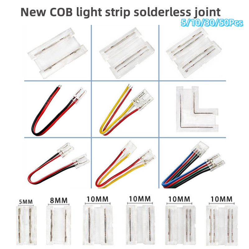 5pcs 2pin 3pin 4pin COB Led Light Strip Wire Connectors 5mm/8mm/10mm Solderless COB RGB CCT Led Strip To Strip Wire Led Connectors