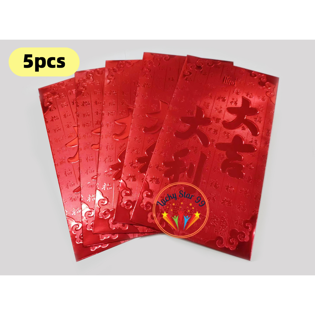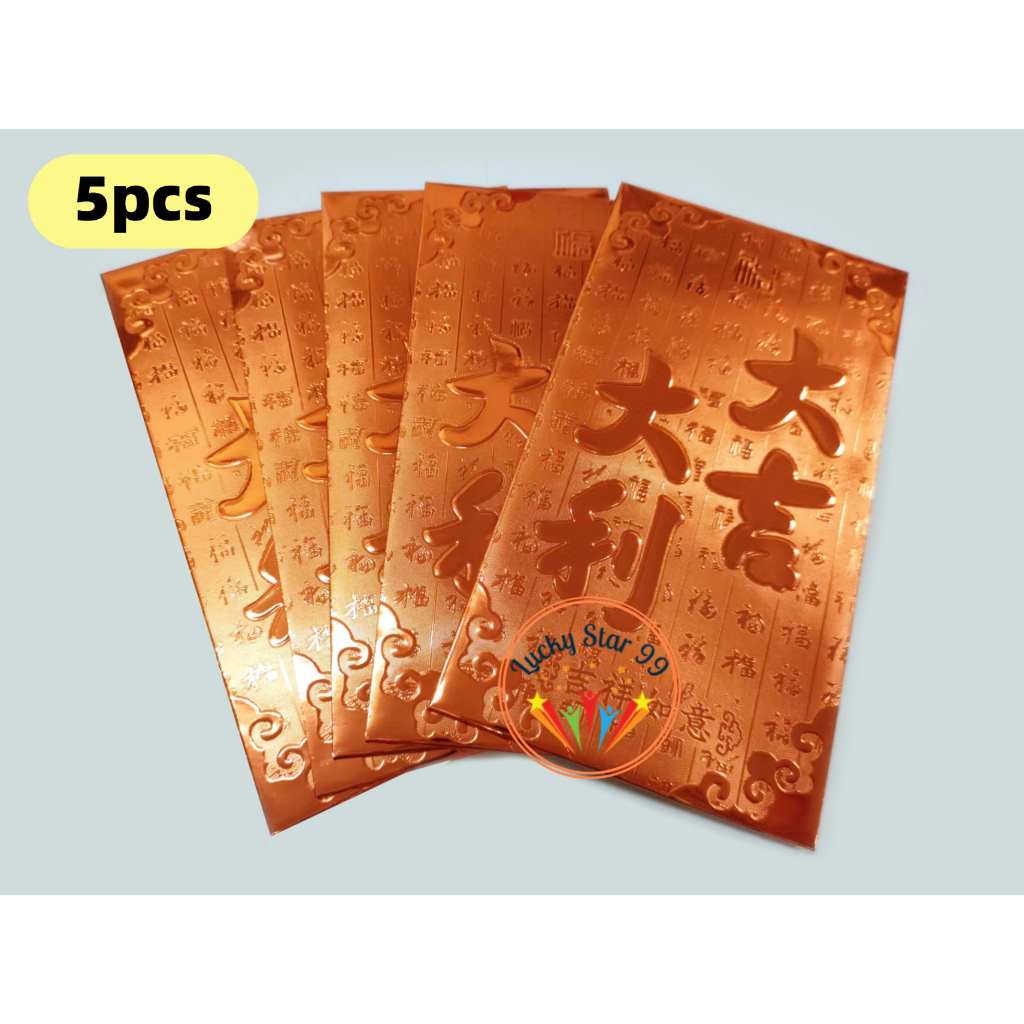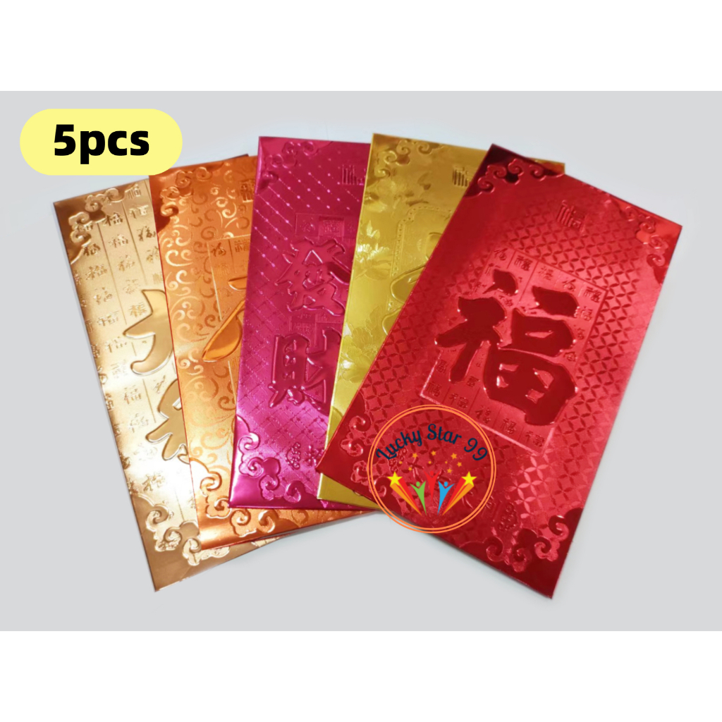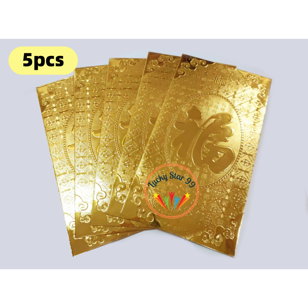 5pcs Angpao Gold Embossed Foil Chinese Money Envelope Ampao Premium Quality