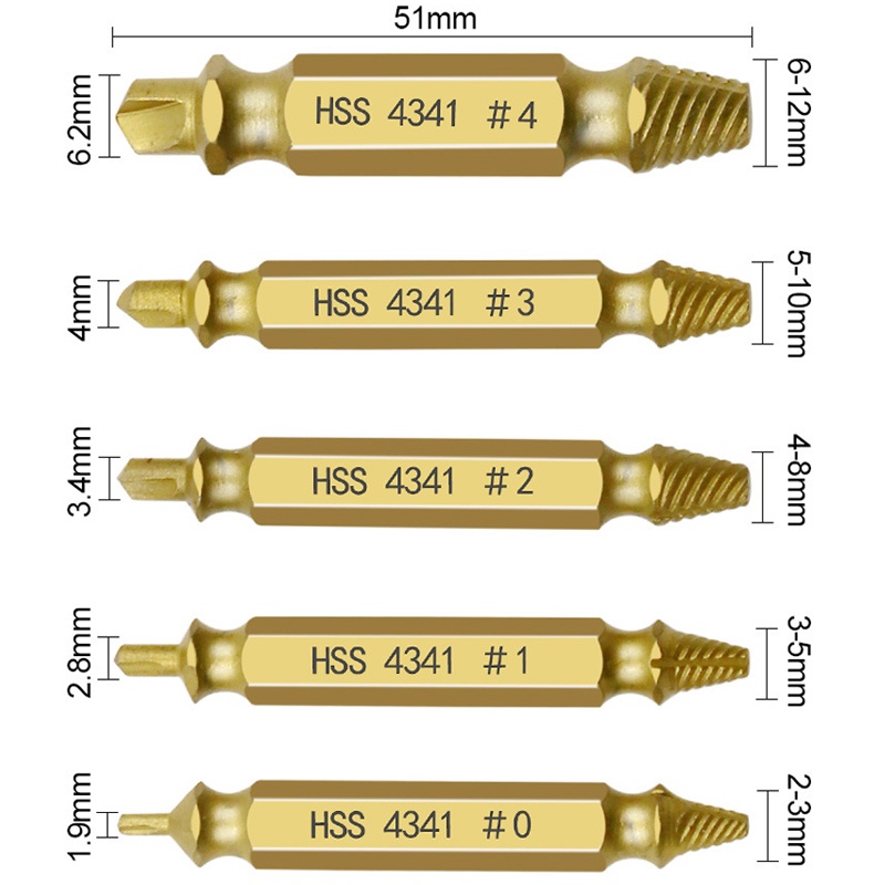 5pcs Bolt Extractor Double Side Damaged Screw Remover Take Broken Screw Set Drill Screwdriver Out