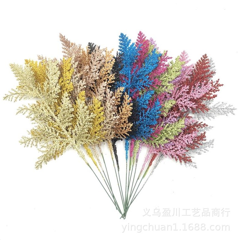 5pcs Christmas Simulation Leaves Multicolor Glitter Artificial Pine Leaves Xmas Tree Decoration Party DIY Flowers Wreaths Fake Plants