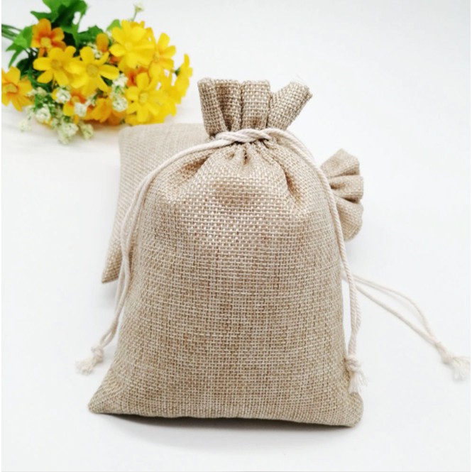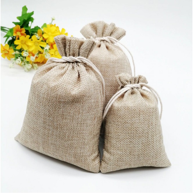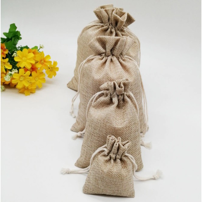 5pcs DrawstringBurlap Pouch Plain Linen GiftBag Jute Storageorganizer Pouch Stringbag dust stringbag