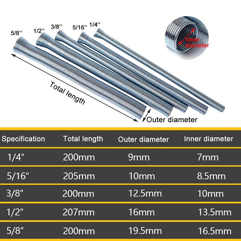 5pcs Manual PVC Wire Spring Pipe Bender Curve Springs Tube Bending Tools