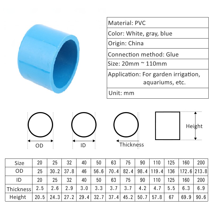 5pcs PVC 20/25/32/40/50mm Pipe End Cap Water Pipe Plug Tube End Connector Garden Irrigation Aquarium Fish Tank Plug