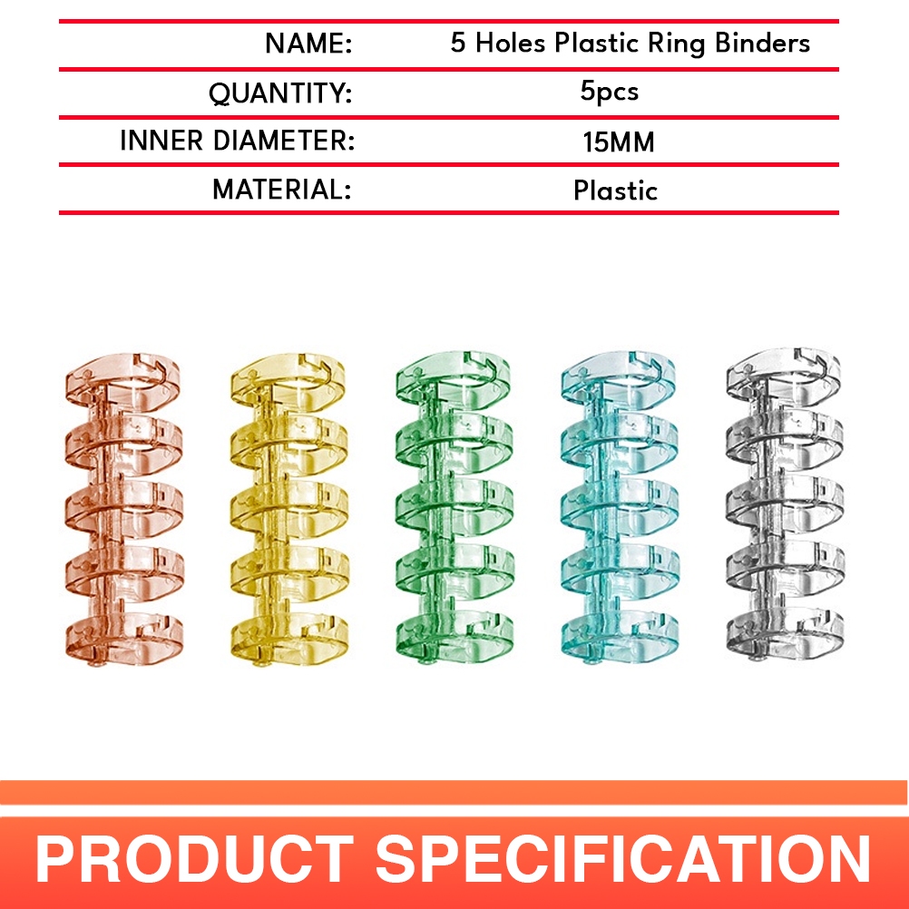 5pcs Plastic Ring Binder 5 Holes Ring Binding Spines Combs 60 Sheets 80GSM Capacity