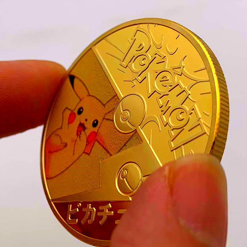 5pcs/Set Pokemon Coins Cards Pikachu Gold Plated Coin Game Collection Cards Souvenir Gift