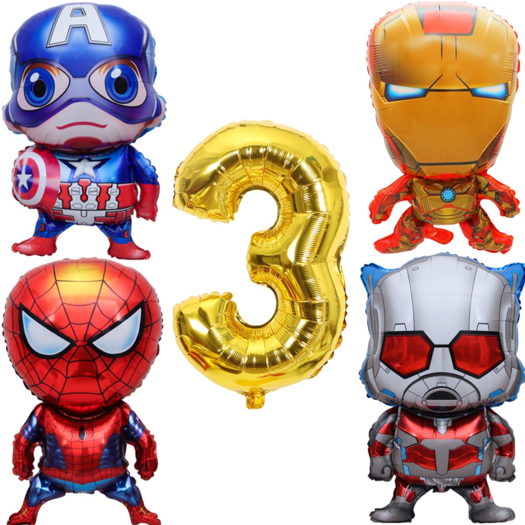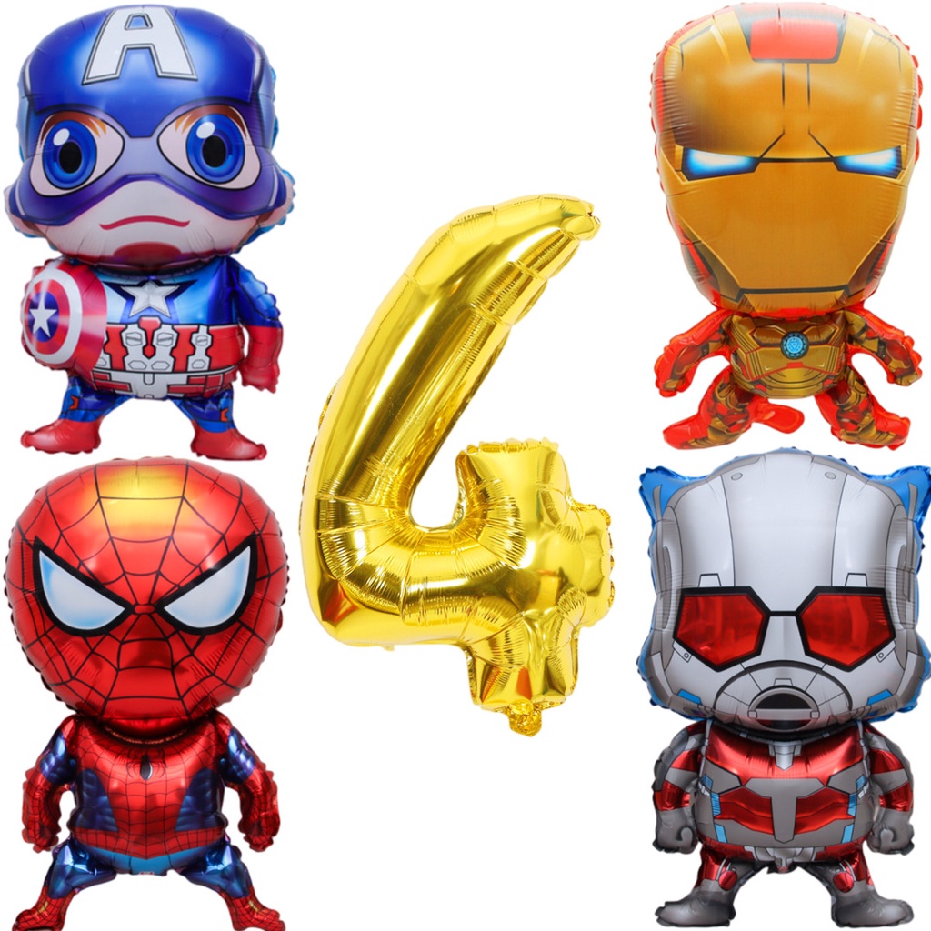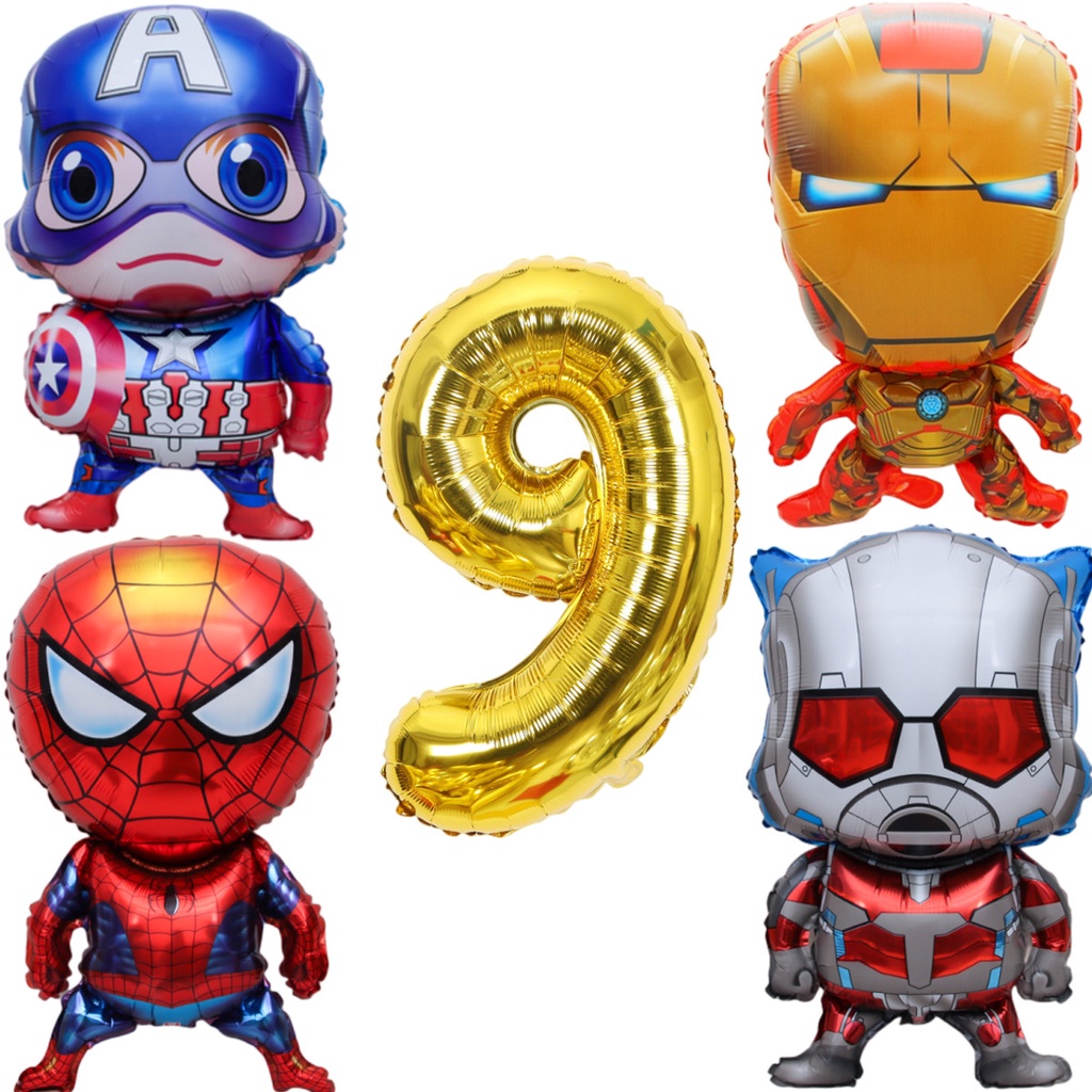 5pcs Superhero Standing 32inch Gold Blue Number Balloon Spider Man Iron Man Captain America Avengers Balloons Party Decorations