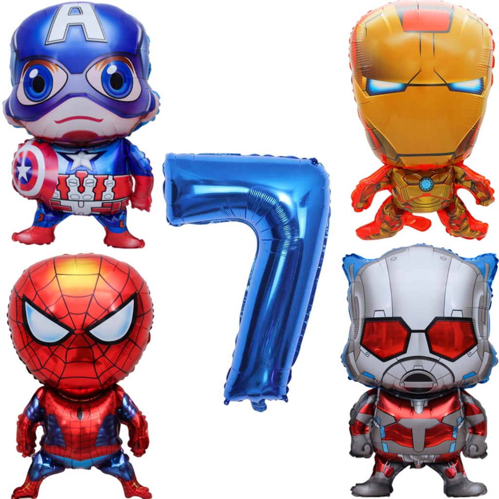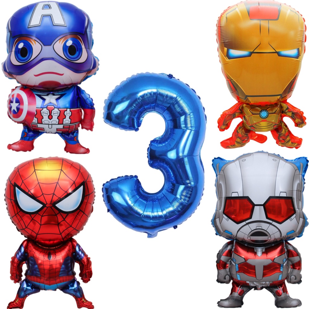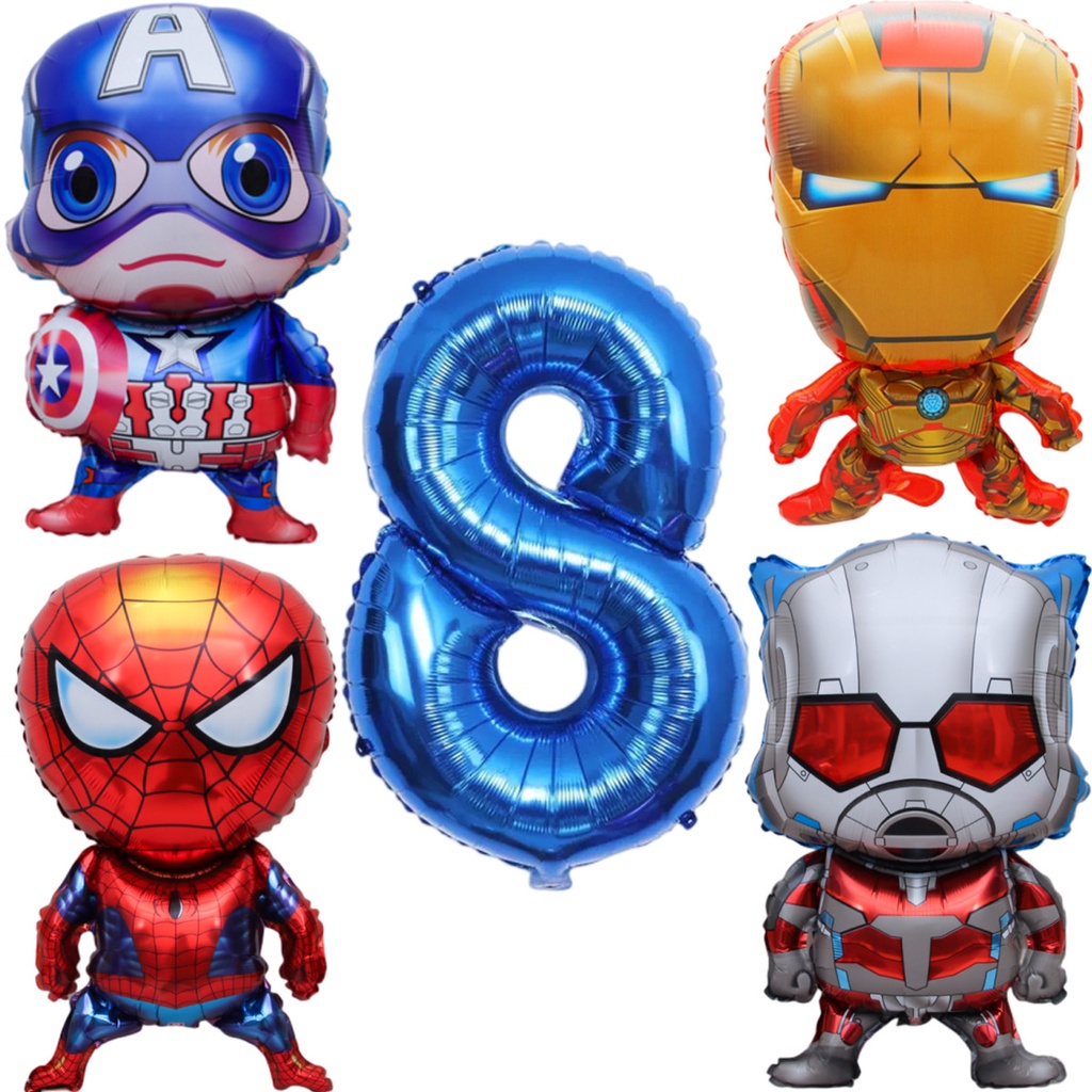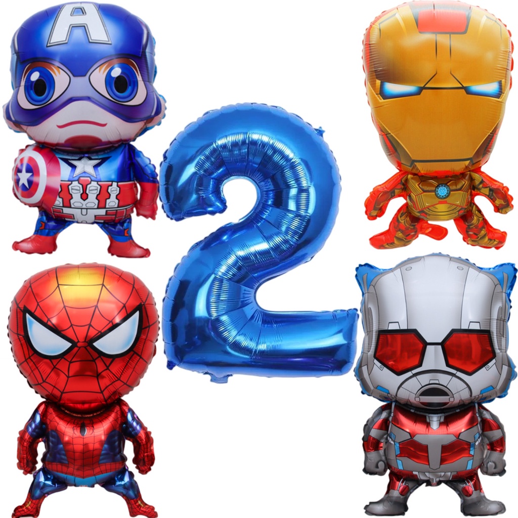 5pcs Superhero Standing 32inch Gold Blue Number Balloon Spider Man Iron Man Captain America Avengers Balloons Party Decorations