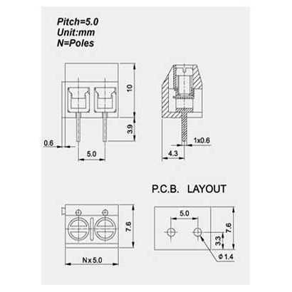 5pcs Terminal Block 5mm pitch PCB mounted connector KF301-2P KF301-3P KF301