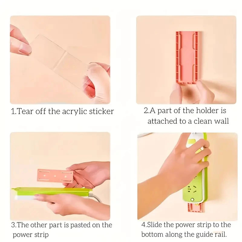 Wall-Mounted Self-Adhesive Socket Fixer Punch-Free Power Strip Holder&Cable Wire Organizer for Home