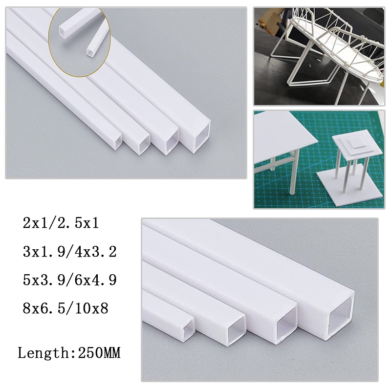 5pcs White ABS Plastic Tube Square Hollow Pipe Model Handmade DIY 2/2.5/3/4/5/6/8/10mm