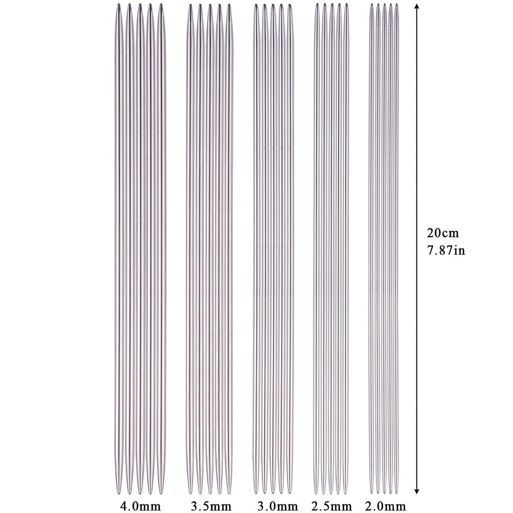 5pcs/set 20cm Straight Knitting Stainless Steel Needles Kit 2.0mm-4.0mm Double Ended Stainless Steel Needles Beginner Knitting