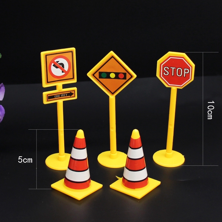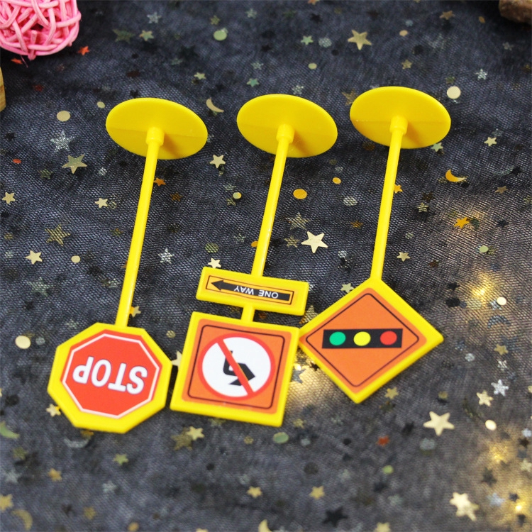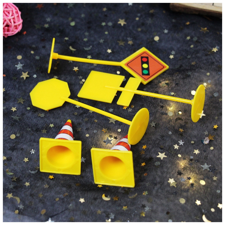 5pcs/set Construction Site Warning Sign Birthday Cake Decoration for Kids Traffic Sign Cake Decorating Toppers Car Party Decorations