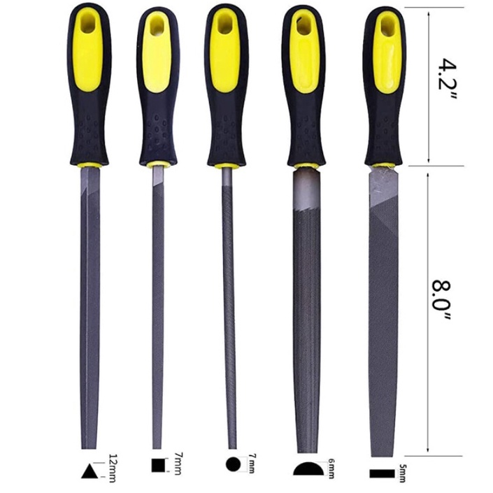 5pcs/set Engineer Metal File 8 Inch 200mm Soft Grip Assorted Half Round Flat Square Triangle Round