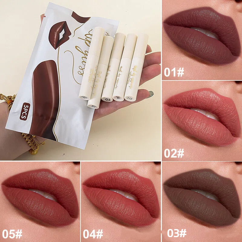 5pcs/set Lip Tint Set Waterproof Lipstick Set Matte Lipgloss Tint Set Makeup Beauty Gifts 6pcs