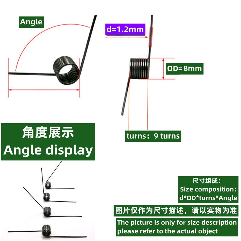 5pcs wire diameter 1.2mm OD6/8/10/12mm V-shaped spiral torsion spring