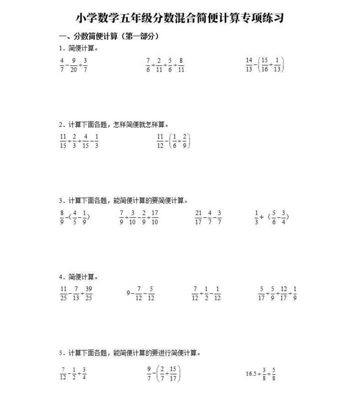 5th Grade Math Textbook Volume 1 2: Fraction Addition and Subtraction, Simplified Expressions,