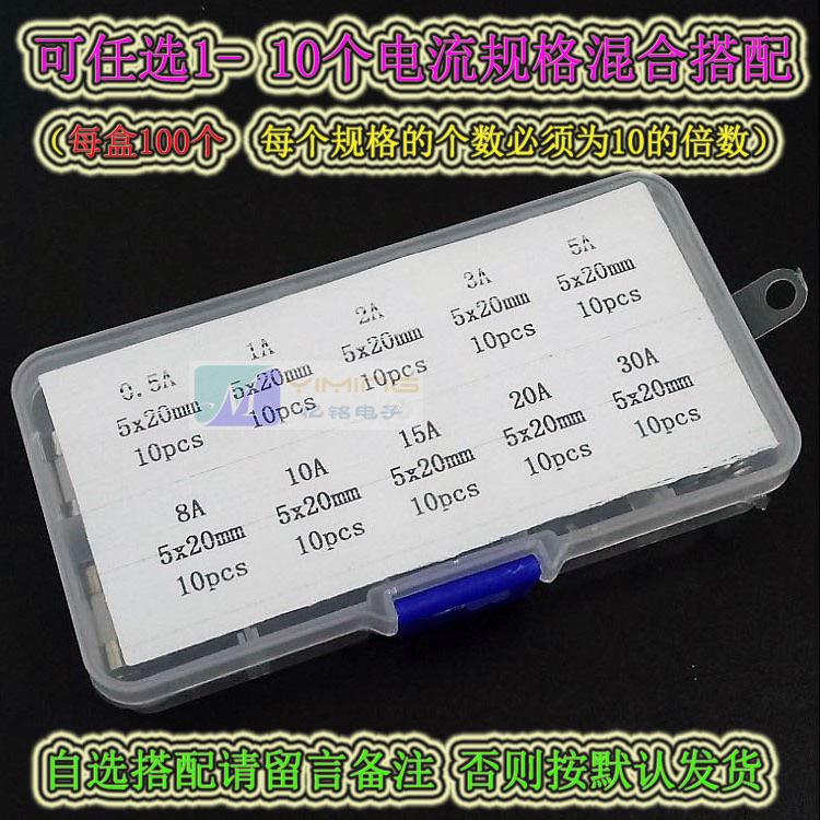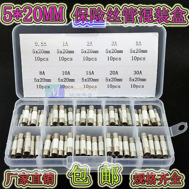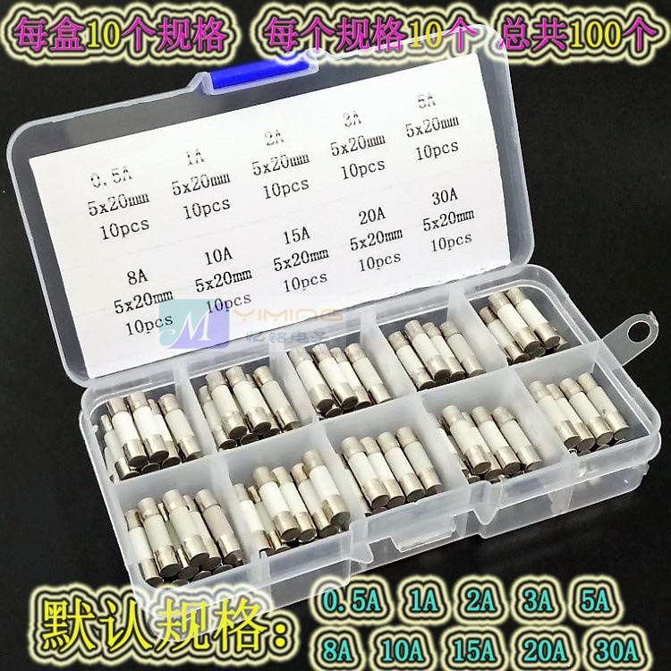 5x20MM ceramic fuse tube 0.5A-30A 250V mixed package for car cigarette lighter induction cooker