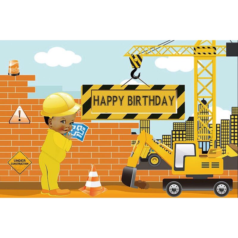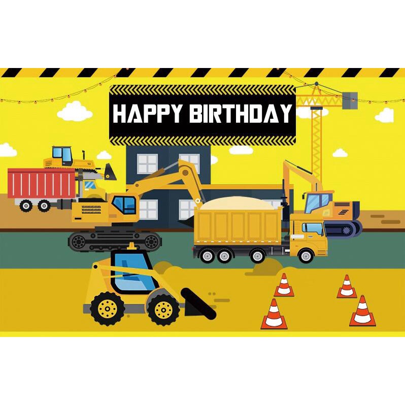 5x3ft Construction Engineering Backdrop Happy Birthday Background Engineering Vehicle Photo Photography Background