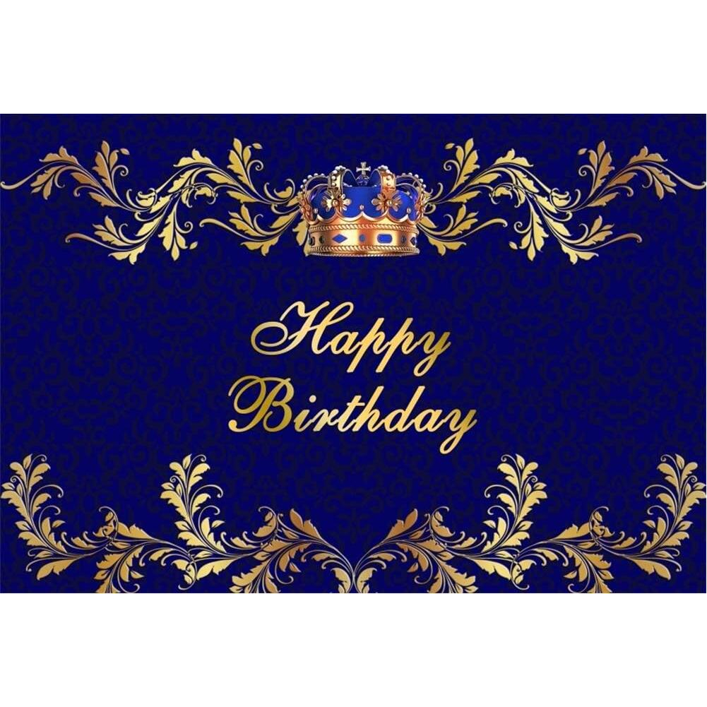 5x3ft Crown Backdrop Blue Gold Birthday Backdrop King Prince Royal Background for Photography Fondo De Rey Crown Floral Frame Men 30th 40th 50th 60th Bday Party Decor Banner