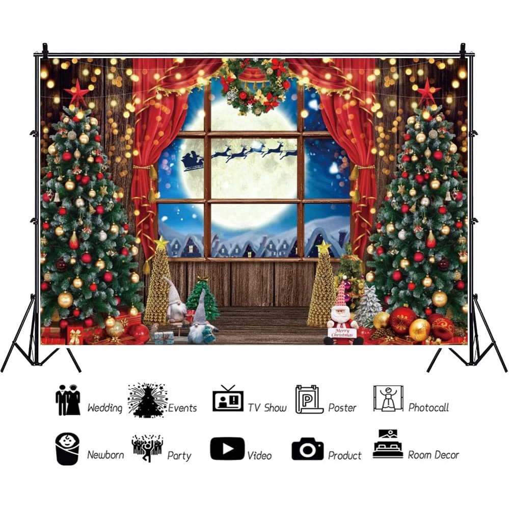 5x3ft Merry Christmas Backdrop for Photography Christmas Xmas Tree Photo Backdrop Christmas Party Vinyl Backdrops, Winter Snowflake Rustic Wood Background