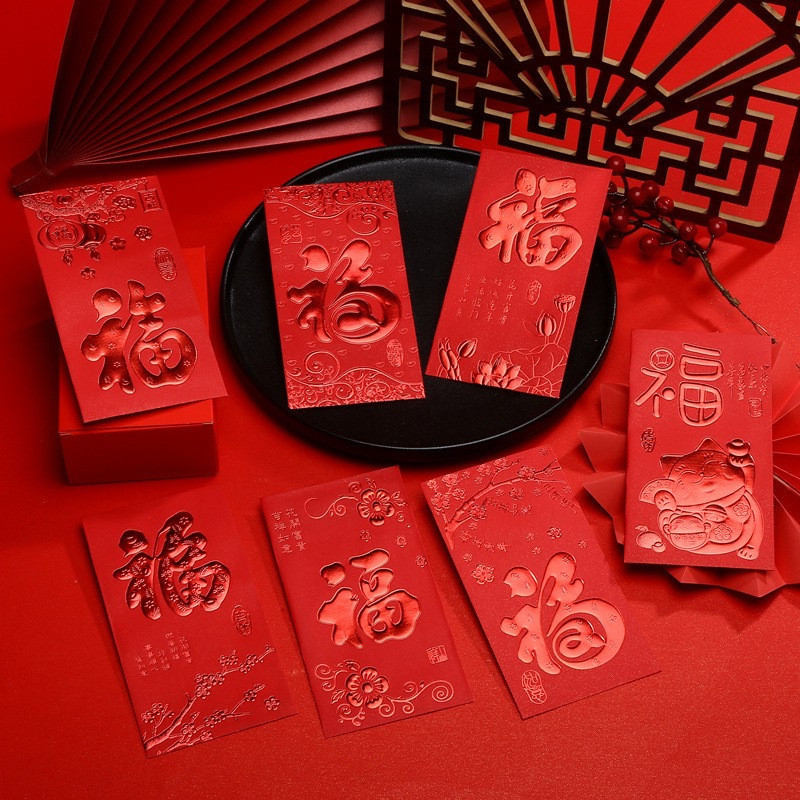 6/24PCS New Year Blessing Red Envelope Chinese Birthday Wedding Red Envelopes Lucky Red Envelope