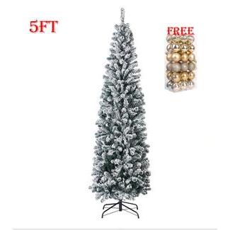 6/7.5FT Snow Flocked Slim Christmas Tree Fir Hinged 1100 Thick Branches Metal Stand Pencil Xmas Tree