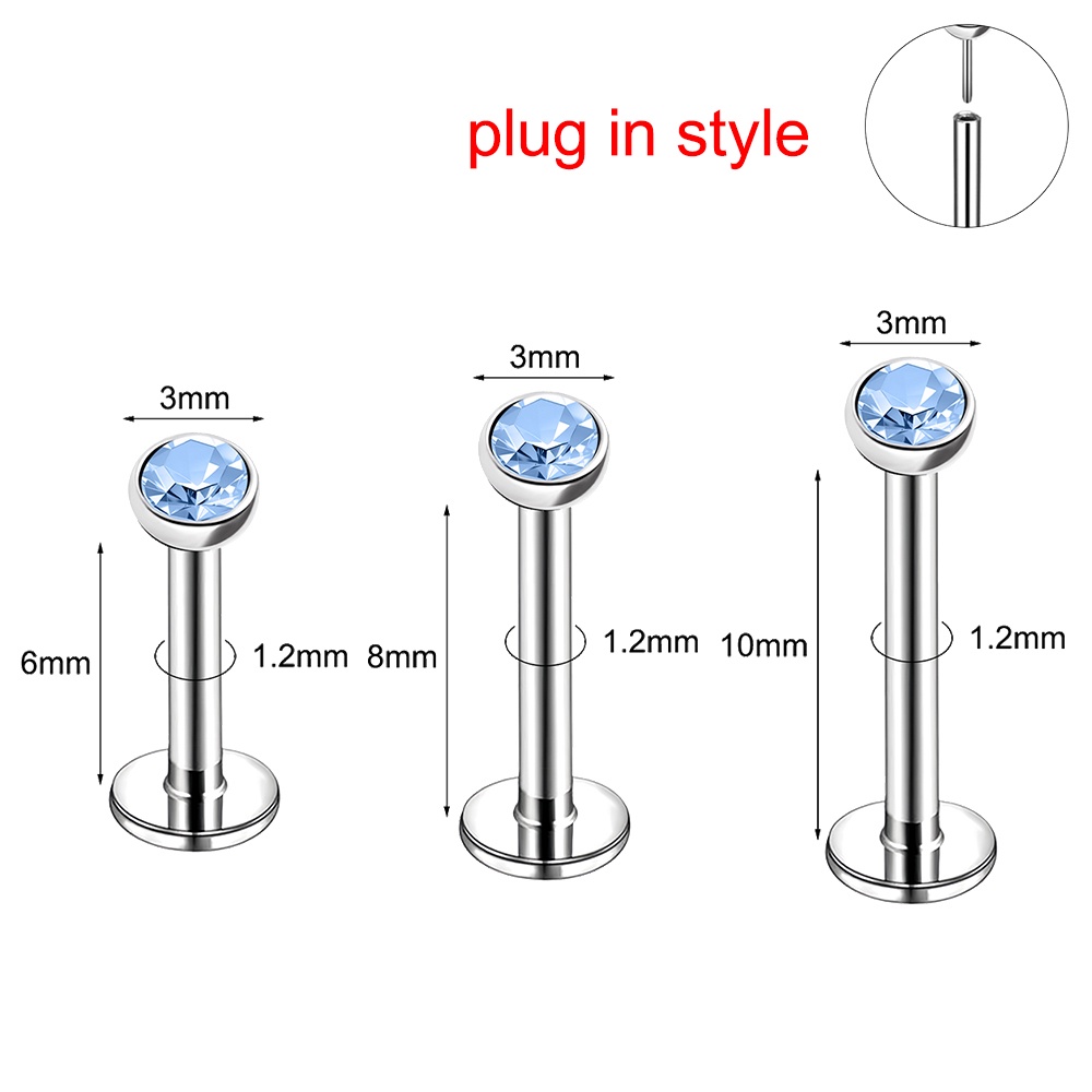 6/8/10mm Plug In Style Stud Earring 1 PC Opal Labret Ring 316L Stainless Steel Ear Lip Piercing 16G Ear Stud Body Jewelry