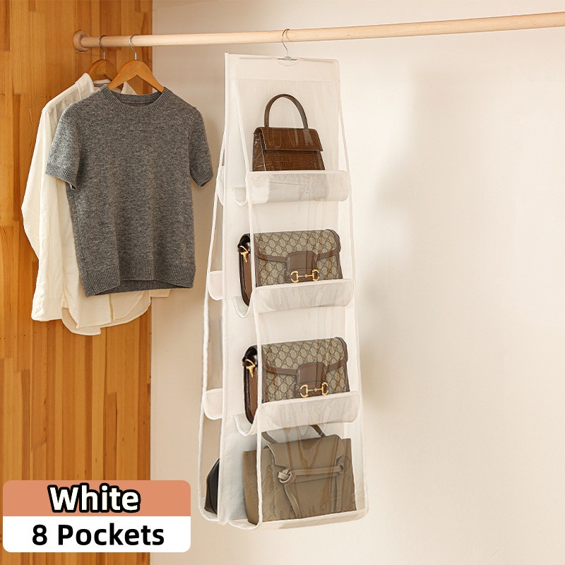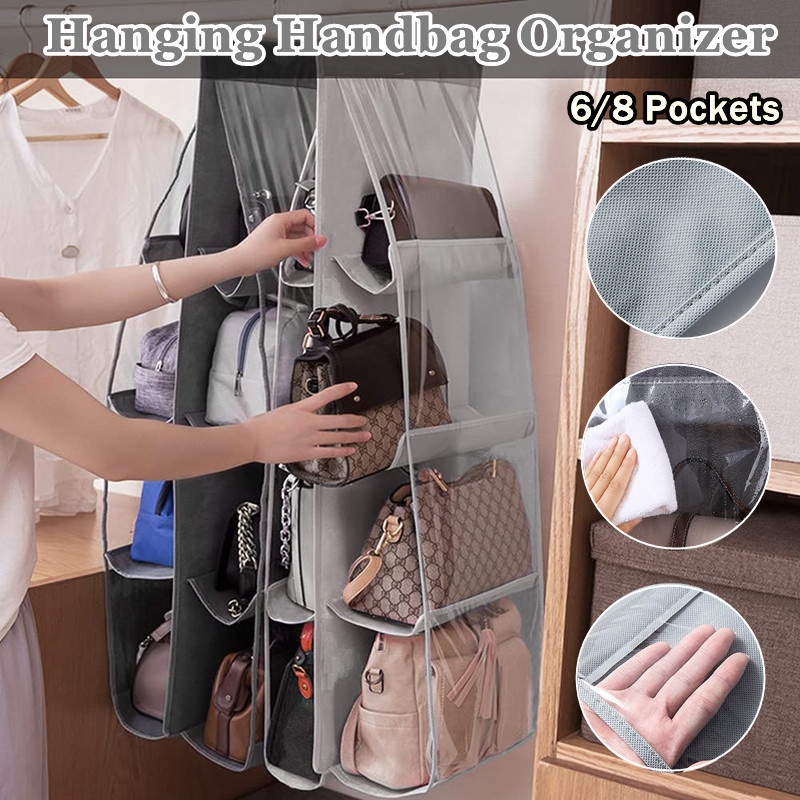 6/8 Pockets Shelf Tote Rack Closet Wardrobe Hanging Bag Handbag Storage Organizer Pouch Rack