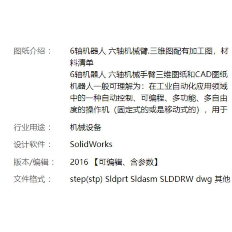 6-Axis Robot Arm for Production, Blueprint 3D Model CAD Equipment SW Machine Mechanical 2934