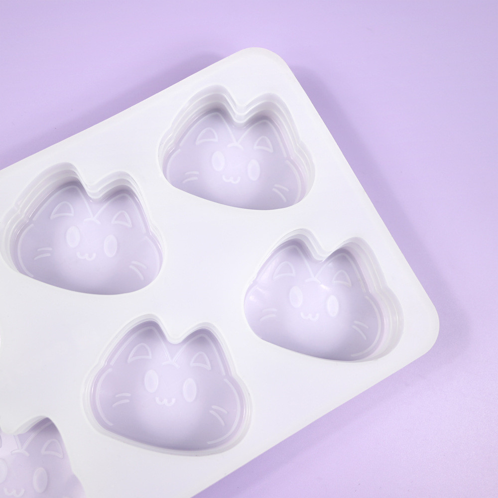 6-Cavity Cartoon Cat Silicone Mold Half Cooked Cheese Mousse Mold Mousse Cake Mold Pudding Jelly Mold Handmade Soap Mold DIY Baking Mold